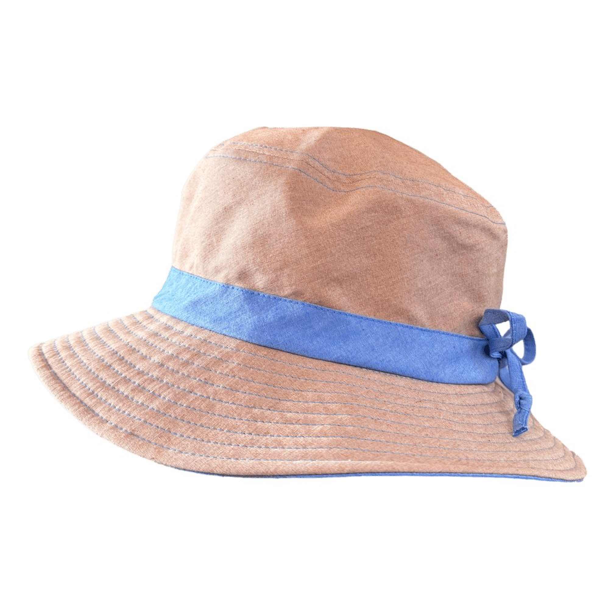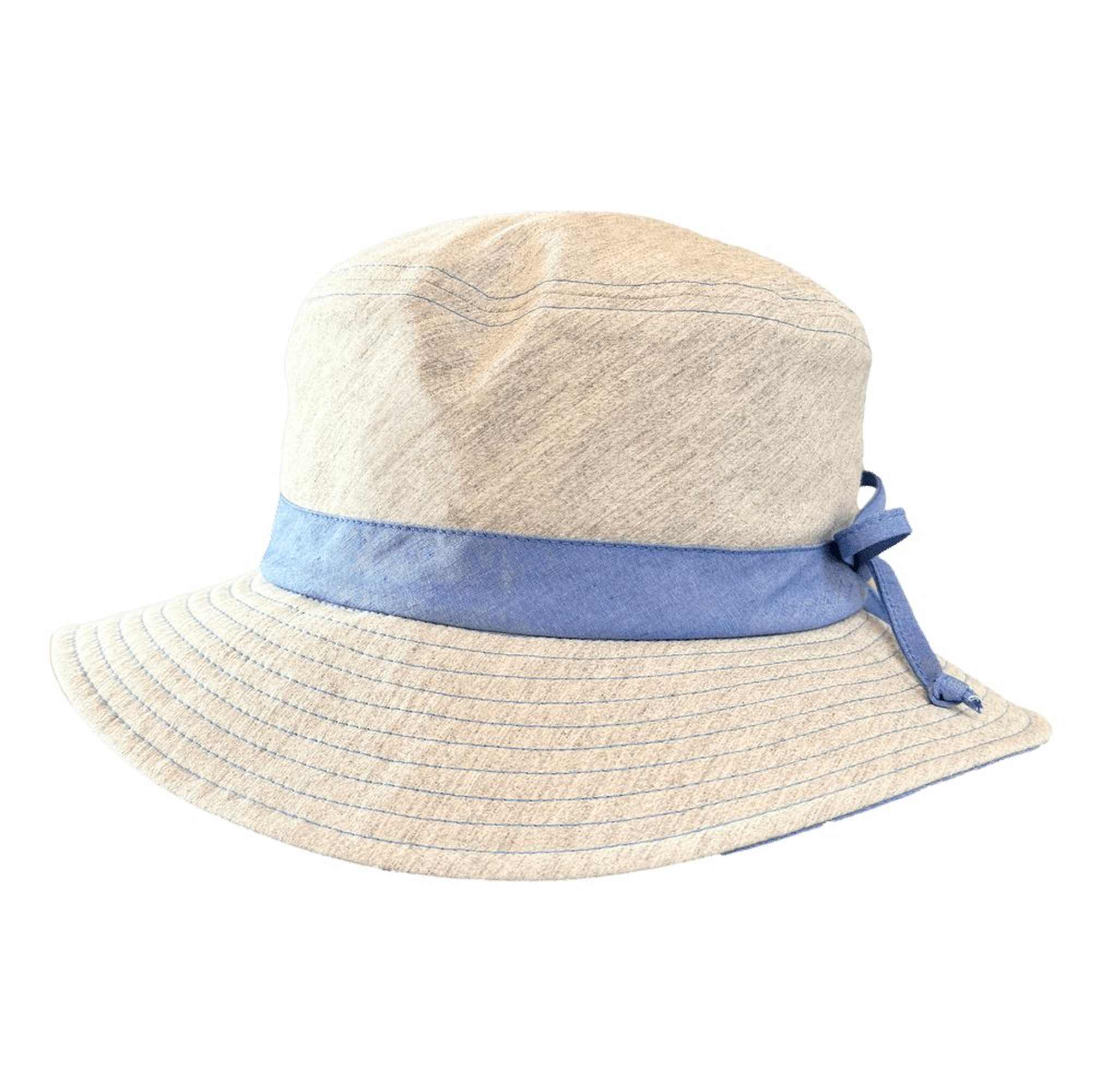- farblich abgesetztes Hutband mit Schleife