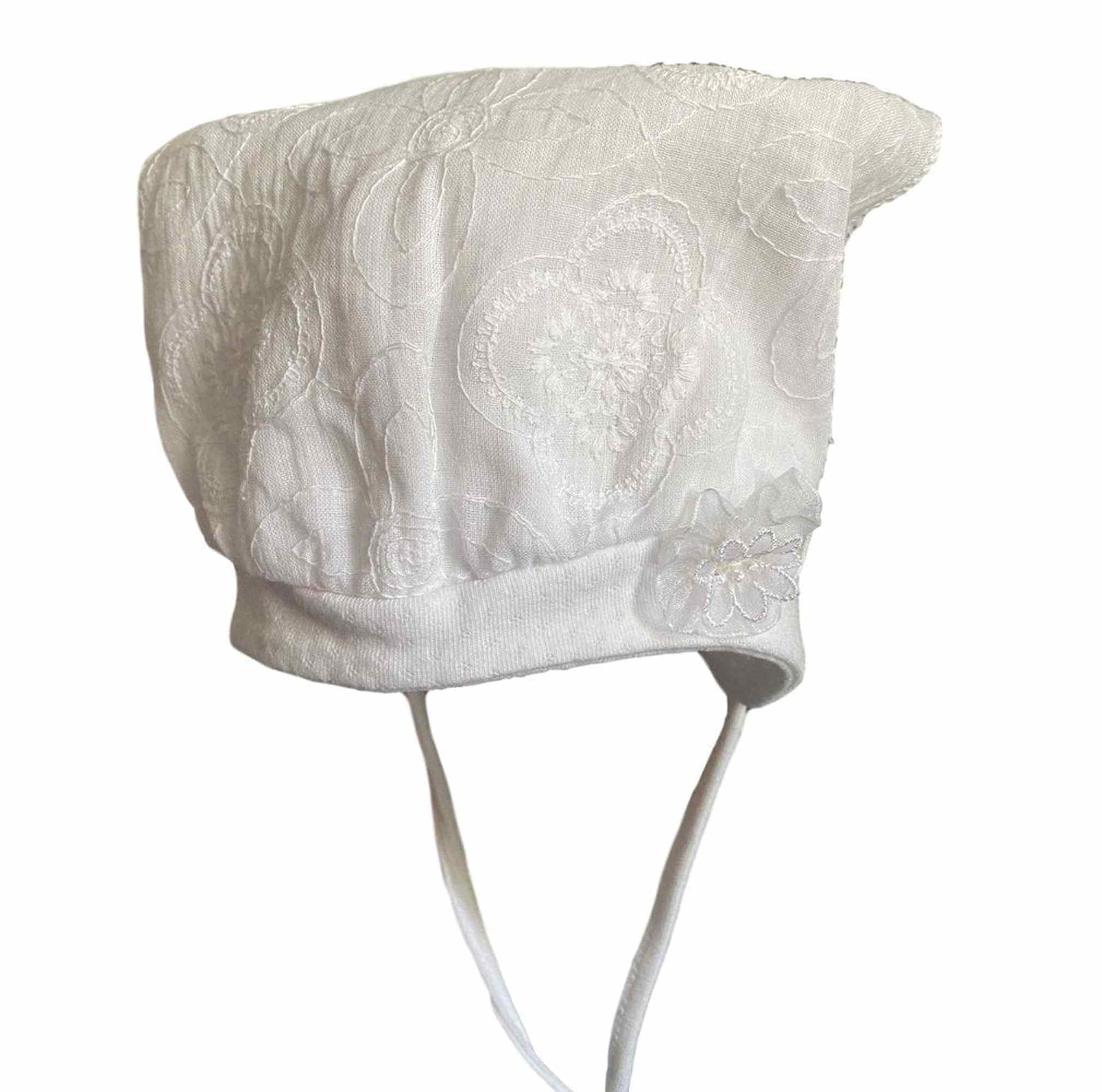 Heimat Geschäft Taufe Döll Kopftuch Mädchen Babymütze Taufe weiss mit Stickerei
