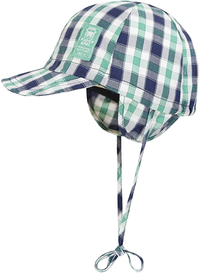- Leichte Sommermütze mit Karomuster, Ohrenklappen und Bindebändern.