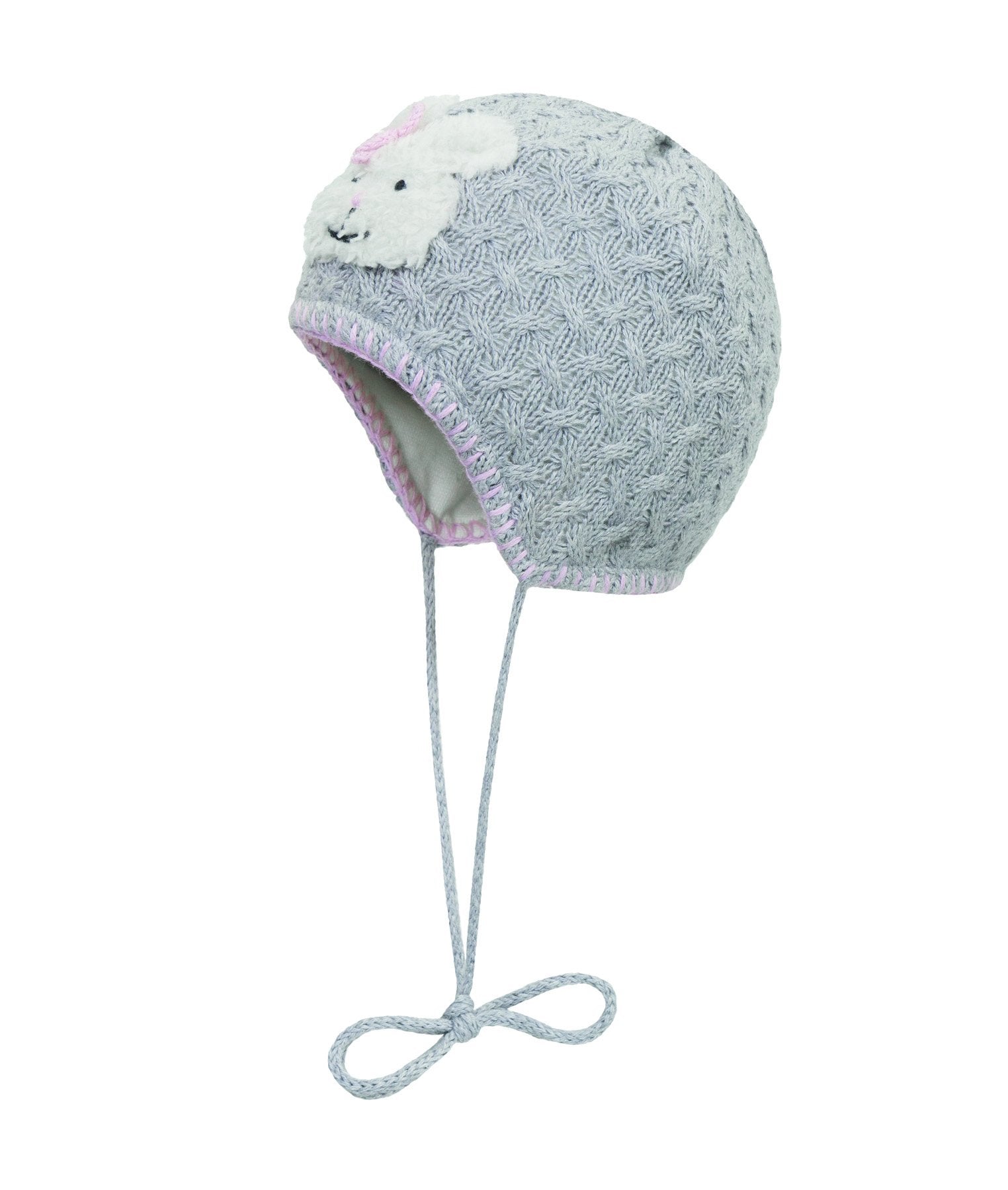 • Döll Baby Bindemütze in grau mit Ohrenschnitt und Bindebänder.
