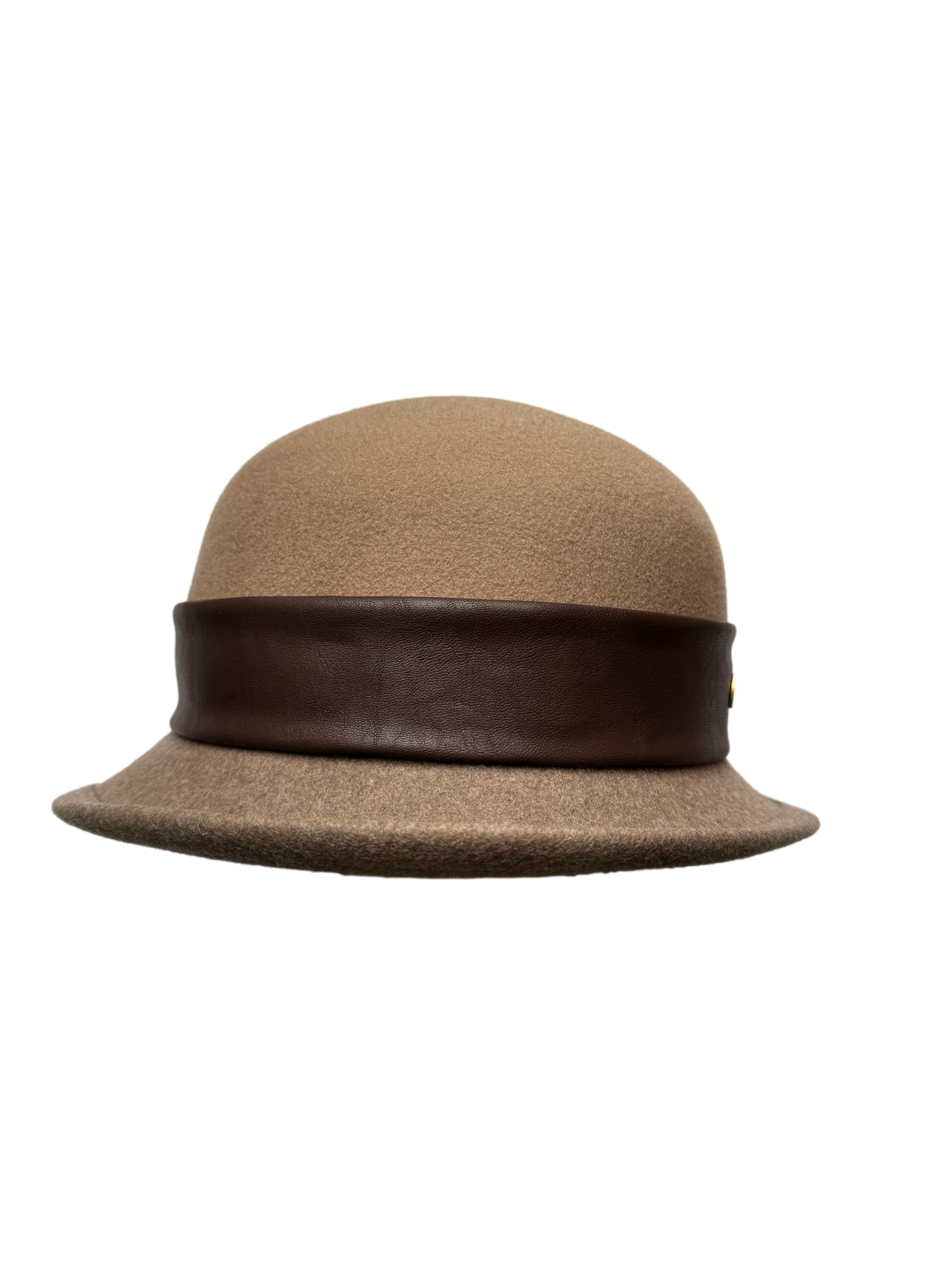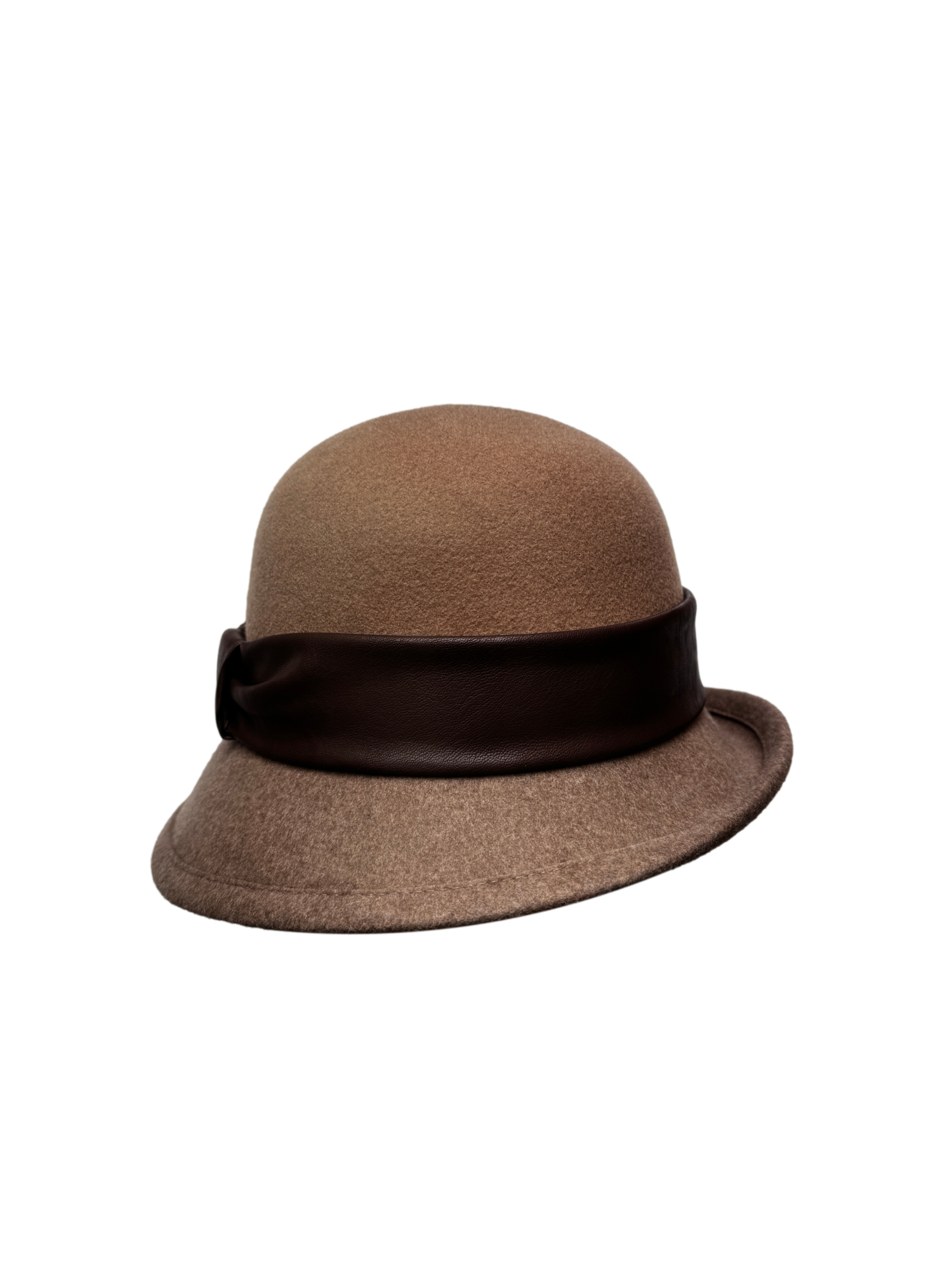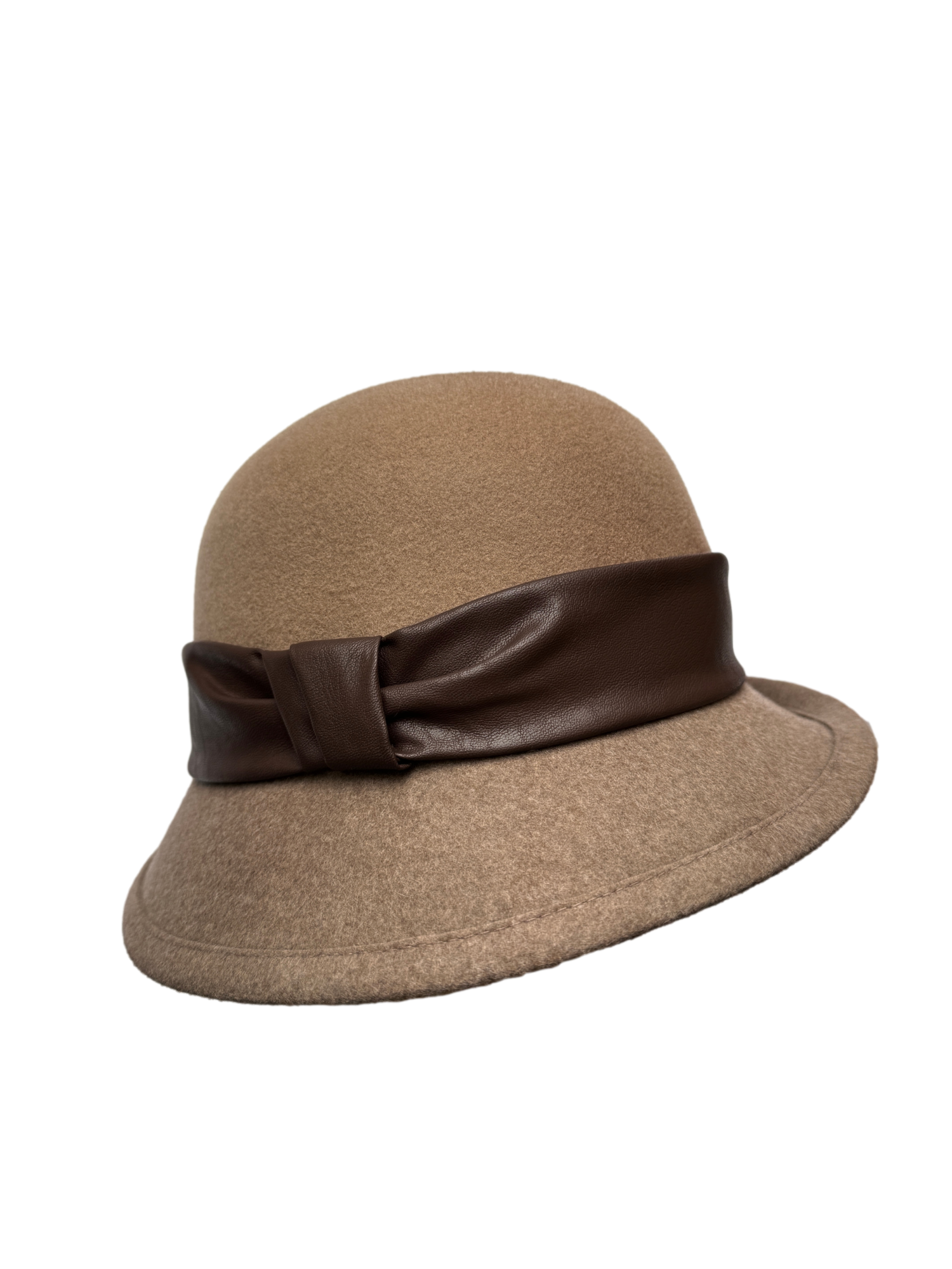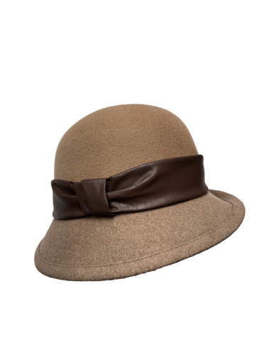 Besonderheiten: moderne Twotone-Farbgebung mit Oberkopf in beige und Krempe in beigemelange, klassische Glockenform, feminine Note durch asymmetrische Krempe